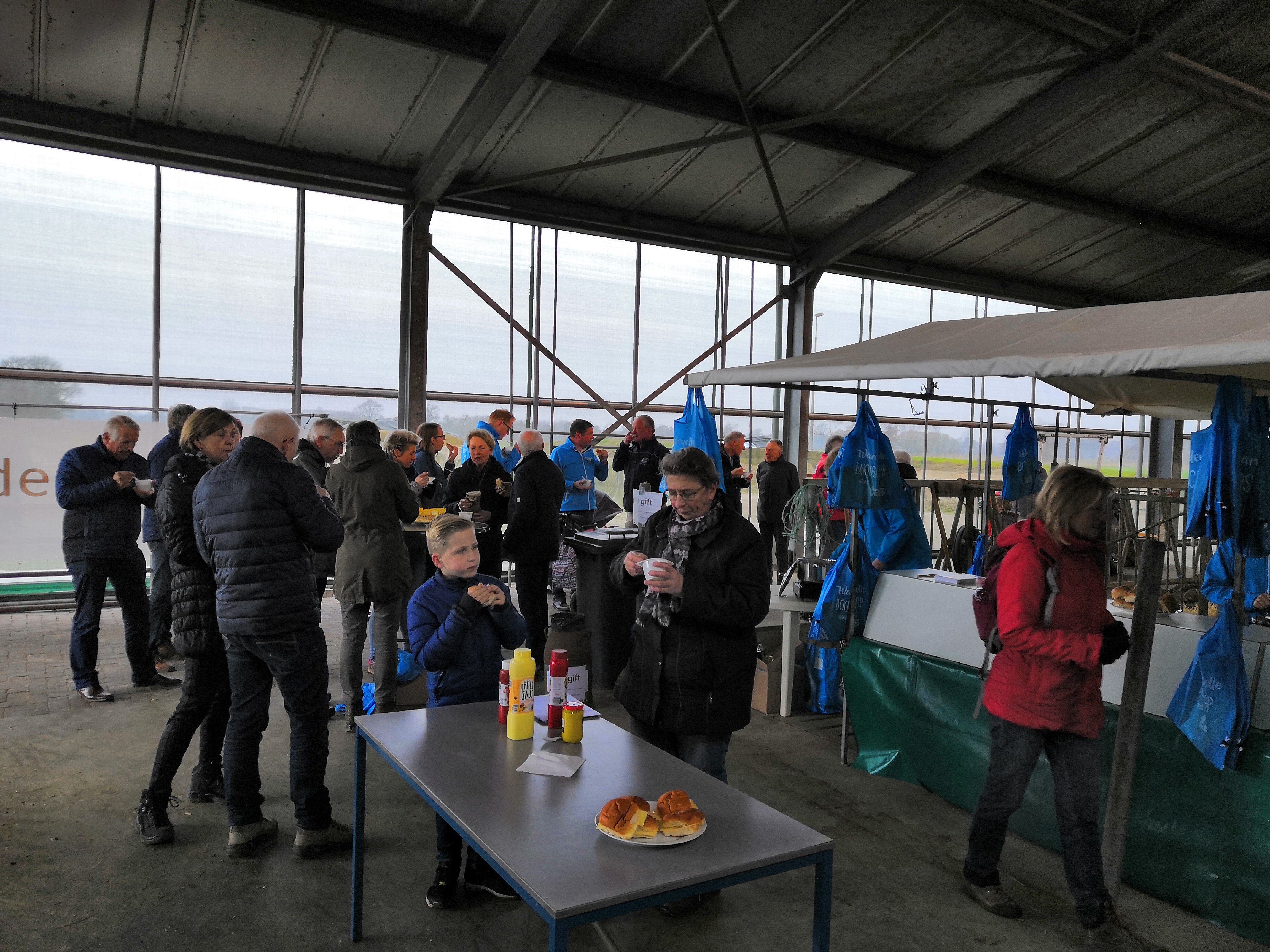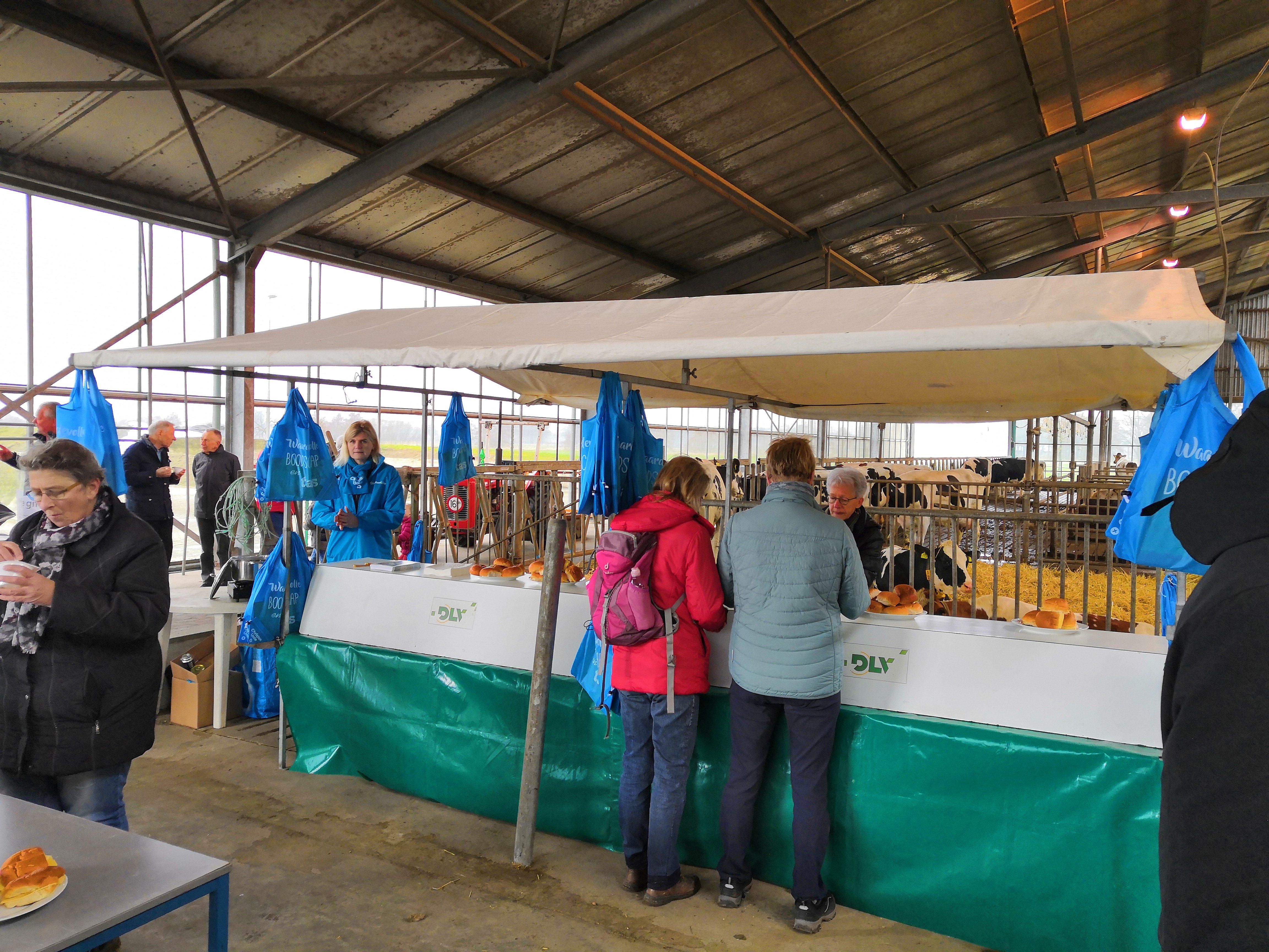 Hierna zijn de eerste wandelaars vertrokken richting de boerderij van Bert de Wilde. Hij leidde de groep door de omgeving van het nieuwe Reggedal met de benodigde uitleg. De wandeling eindigde bij de boerderij, waar iedereen kon genieten van een vers glas melk, broodjes kaas en broodjes knakworst. En natuurlijk kon een bezoekje aan de kalfjes niet ontbreken.